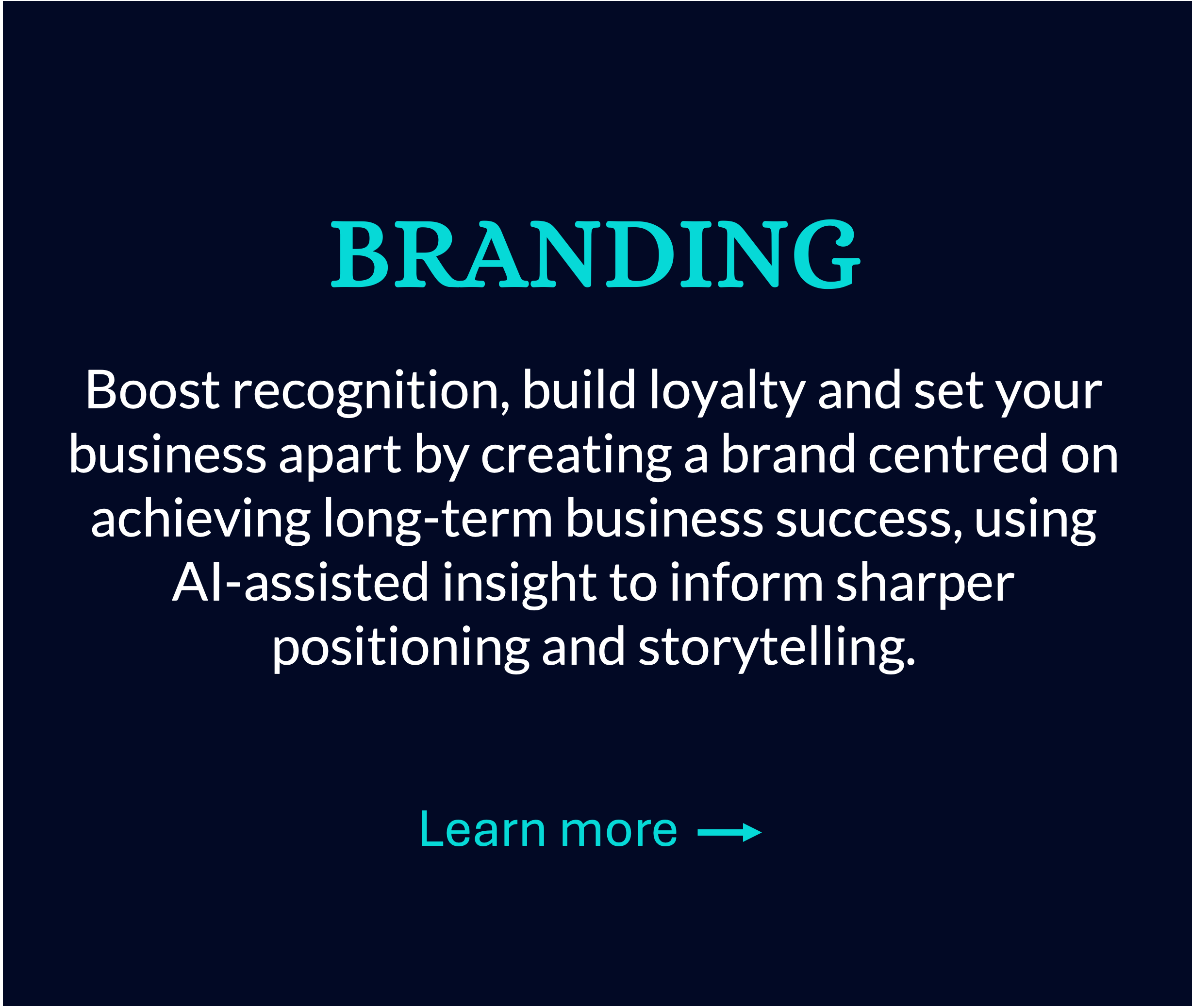 Our process ensures your strategy and brand communications align with your purpose and goals, while using AI to explore more options, test faster and reduce wasted effort.